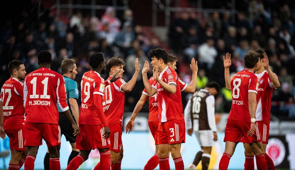拜仁慕尼黑:40-乌比格·乔纳斯、2-于帕梅卡诺、4-塔、44-斯坦尼西奇、27-莱默尔(90" 20-比肖夫·汤姆)、6-基米希(90+2" 8-戈雷茨卡)、45-帕夫洛维奇、14-迪亚斯、17-奥利塞(90+3" 3-金玟哉)、7-格纳布里(61" 10-穆西亚拉)、9-凯恩